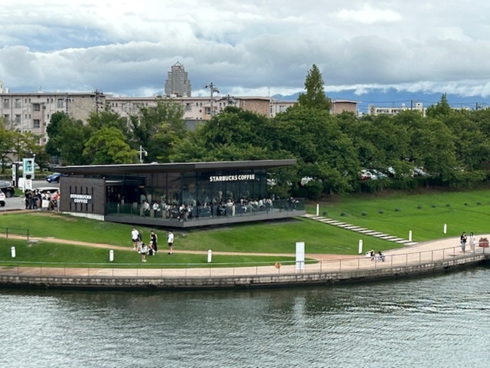 牡蠣をお腹いっぱいに食べた後、次 どこに行こうかと検討した結果!『富山富岩運河環水公園』に決定!(^^)! そこにあるスターバックスが世界一美しいスタバ!と称されているんだって!! スターバックスと言えば、シックなカラー&ウッディなインテリアが特徴だが、その中でも特徴的な建築のお店が富山県にあるのです。そこは『スターバックス富山環水公園店』です! 運河を生かした公園内にあります。 店の外観は、ガラス張りで綺麗っちゃ綺麗ですが世界一?! わたしにはまあまあ かっこいい!スタバ にしか見えないのですが…! 今回は行列がすご過ぎて中には入れなかったんですが、このスタバは窓際の席から観る景色が最高だそうです!(^^)! 夕方になると水門を照らす夕陽がとても素晴らしいみたいです!春は桜で、夏は緑に花火大会、秋には紅葉、冬は雪景色と日本の四季を全てここのスタバで堪能できるんですって!! 建物だけでなく、景色を含めた雰囲気が「世界一美しいスタバ」と呼ばれる所以なんですね!! 今度はゆっくりコーヒーを飲みに来ます(^^)v 楽しい1日でした!! 孝行・ひろ子