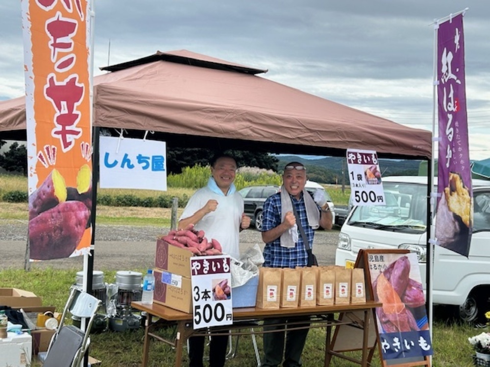 今年も参加いたしました!(^^)! 酒祭り!! あいにくのくもり空でのスタートでした⤵涙 今年は、衣料品の他に新規事業でも参加です(^^)v 何年か前に焼き芋を売ってみたいな~なんて考えておりましたが 念願かなって 焼き芋の販売を始める事ができそうです\(^o^)/ 13年まえからお世話になっている『吉川まちゼミ』主宰者の松井氏が全国を回っている時に異業種の焼き芋を店頭で出来ないか?と思い 鹿児島の紅はるかと言う サツマイモで焼いてみようと始めたのがきっかけで、全国の まちゼミ の仲間に話していました。話を聞いた時に「これだ!」と思い 4月に直接 愛知県岡崎市の松井氏のお店にひろ子さんと訪問し 店頭で販売しているのを見学してきました! 今回の酒祭りで初デビューさせて頂き 30㎏の紅はるかを全て完売しました!(^^)! 食べたお客様が 「すっごく甘くておいしかったよ~!!」と言っていただき とても嬉しかったですm(__)m これからも頑張るぞ~!! 孝行・ひろ子
